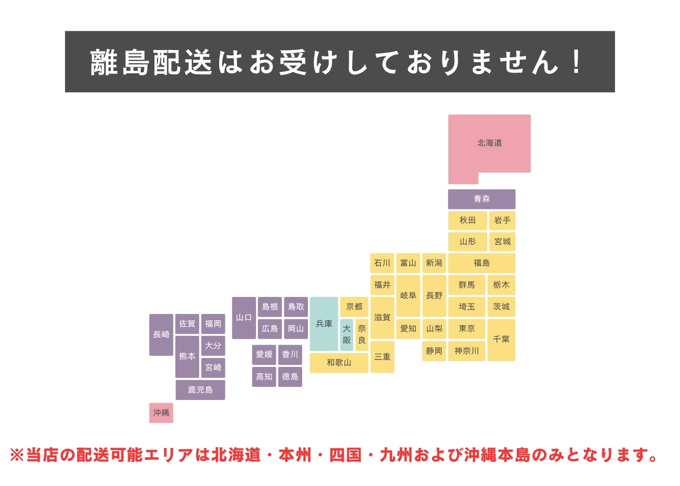 当店では北海道・本州・四国・九州および沖縄本島を除く場所へのお届けをお断りしております。何卒ご了承くださいませ。