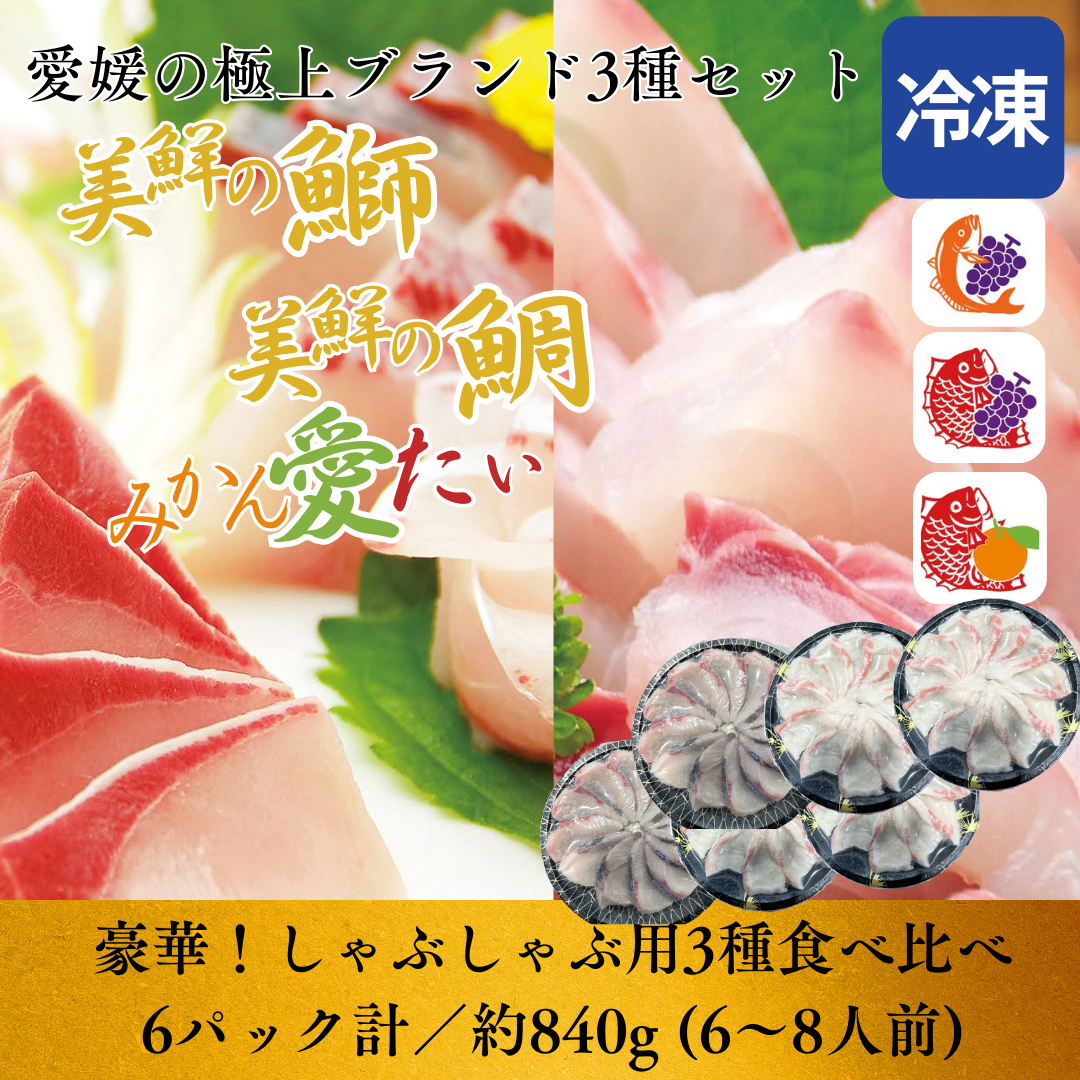 【しゃぶしゃぶ用セット・三種食べ比べセット】美鮮の鰤・美鮮の鯛・みかん愛たい スライス(6パック計/約840g)|刺身OK|冷凍便【No.47】